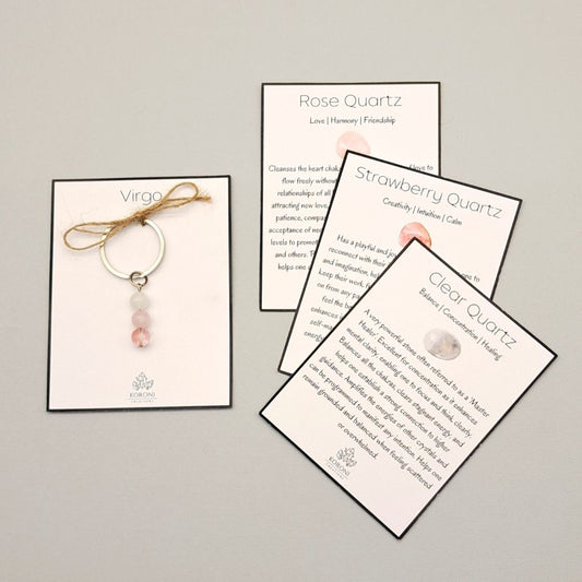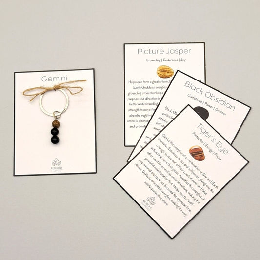 We have a beaded keychain for each star sing - Aries, Taurus, Gemini, Cancer, Leo, Virgo, Libra, Scorpio, Sagittarius, Capricorn, Aquarius and Pisces. Choose the one that corresponds to your zodiac sign for a personal energy boost.