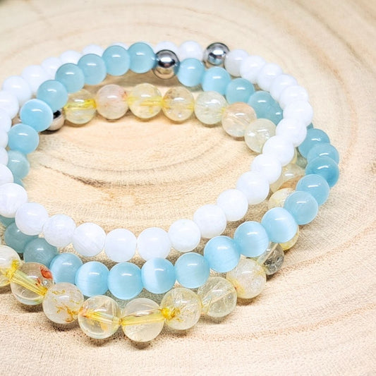 Drittes Auge Chakra Kristalle - 3 Armbänder Set