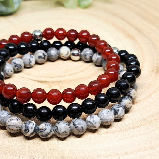 Wurzelchakra-Kristalle – 3er-Armband-Set