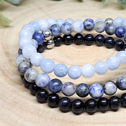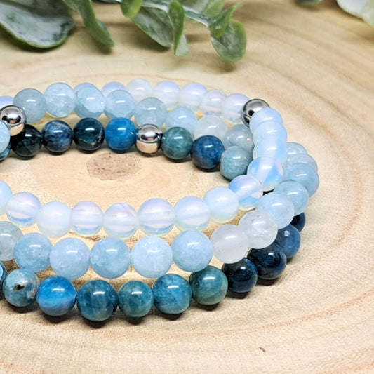 Cristaux du chakra de la gorge - Ensemble de 3 bracelets